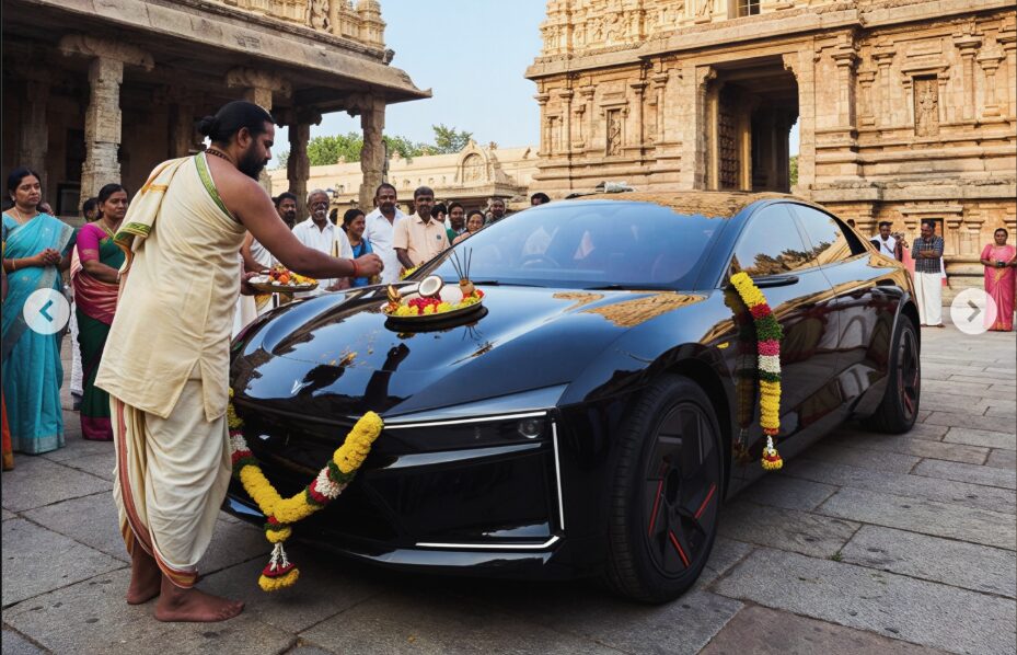What makes these renders even more special is that the artist has given them his unique touch. Most renders are based inside a studio. But here, things are taken a step further. The render has been captured in various Indian scenarios, including temples, Mumbai streets, auto-expos, Delhi highways, a parking lot next to a Maruti 800, a garage, and even while being reviewed by journalists.