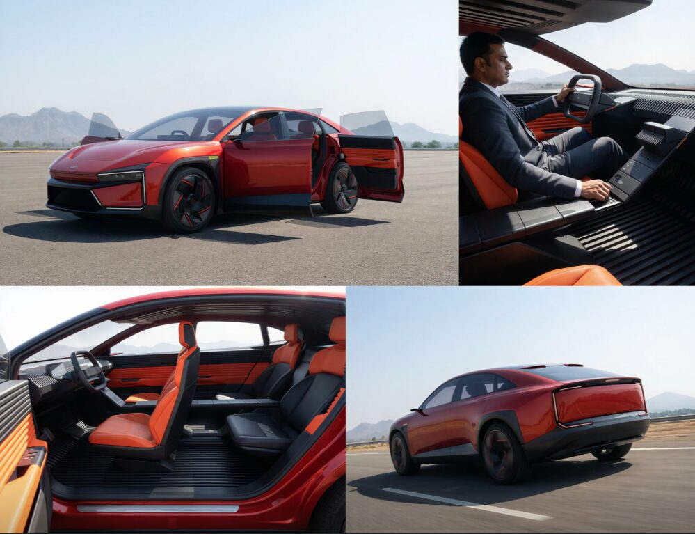 With this render, you can also see the inside of the model. This is where it is evident that it is just a concept. The cabin may be spacious, but it seems too impractical and unlikely at the price point. It is overly minimalist, and the BE6 SUV interiors look much better and more practical. To keep things interesting, the artist has imagined the car with the “suicide doors”.